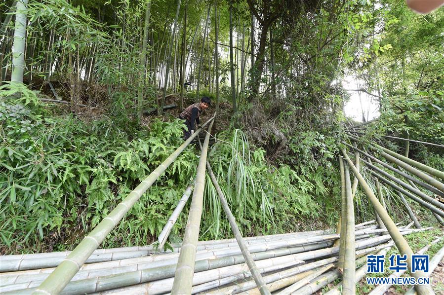 林农在福建永安市上坪乡联合村的一处竹山上采伐竹子(6月23日摄)。新华社记者 林善传 摄