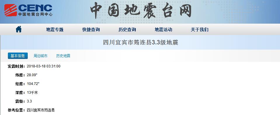 关键词:筠连县,震源深度,宜宾市,中国地震台网,北纬