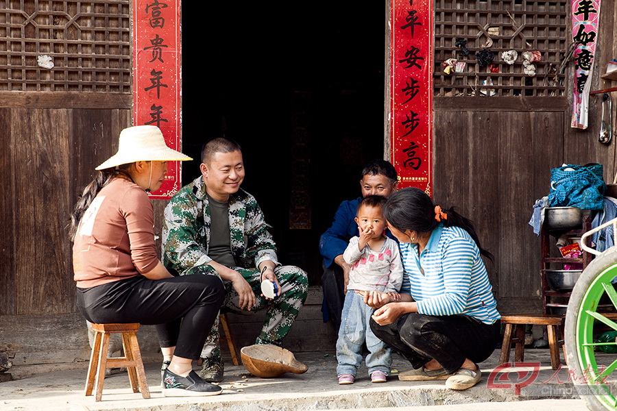 在村民潘朝熙(右三)家,姜海泉(左二)询问着家里的情况。潘朝熙,65 岁。孙女1 岁半,患有先天性心脏病,在今年1 月进行了手术。在姜海泉、驻村工作组成员左亚丽(左一)及村“两委”的帮助下,医疗费基本都得到了报销。“姜书记经常来,有什么(需要帮助的)都会跟他反映。”潘朝熙说。 摄影 王蕴聪/ 人民画报