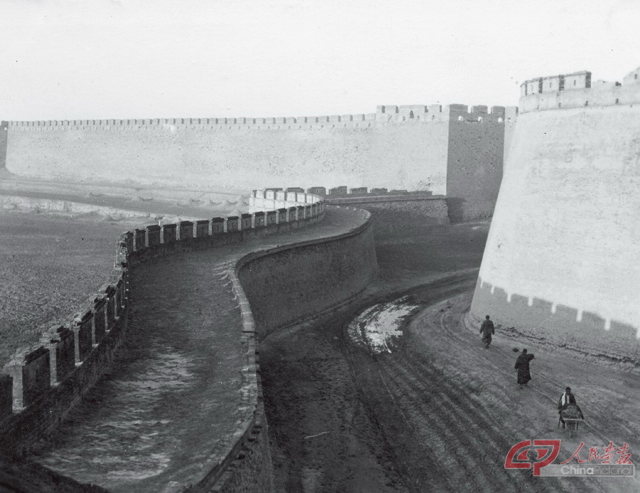 正定古城墙东城门里城、瓮城、月城墙。 梁思成 摄于1933年