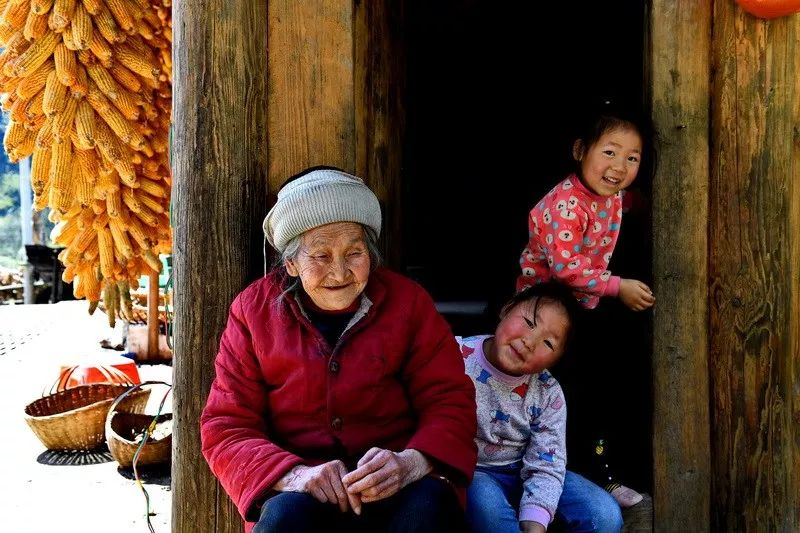 都督乡90岁高龄的老人和她的两个曾孙女。
