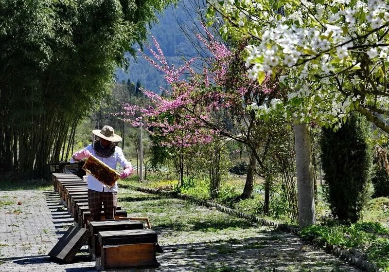 每年4月-9月,遍山遍野不知名目的野花便是蜜蜂最好的天然蜜场,32岁的李祥在打理他的蜂群,他在淘宝上开设的蜂蜜店小有名气。