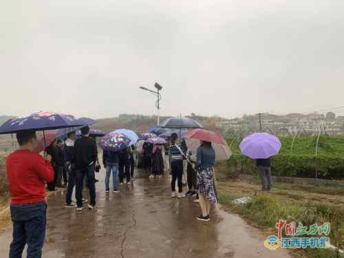 记者们在雨中参观种植基地(曾风摄)