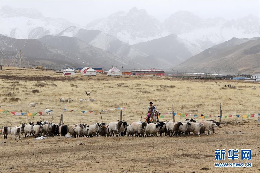 3月12日,在天祝藏族自治县抓喜秀龙镇南泥沟村,宋天柱骑马驱赶羊群。 新华社记者 范培珅 摄