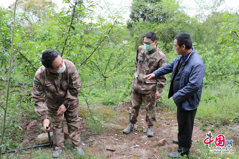 人武部官兵查看花椒园的灌溉设施。王子冰摄