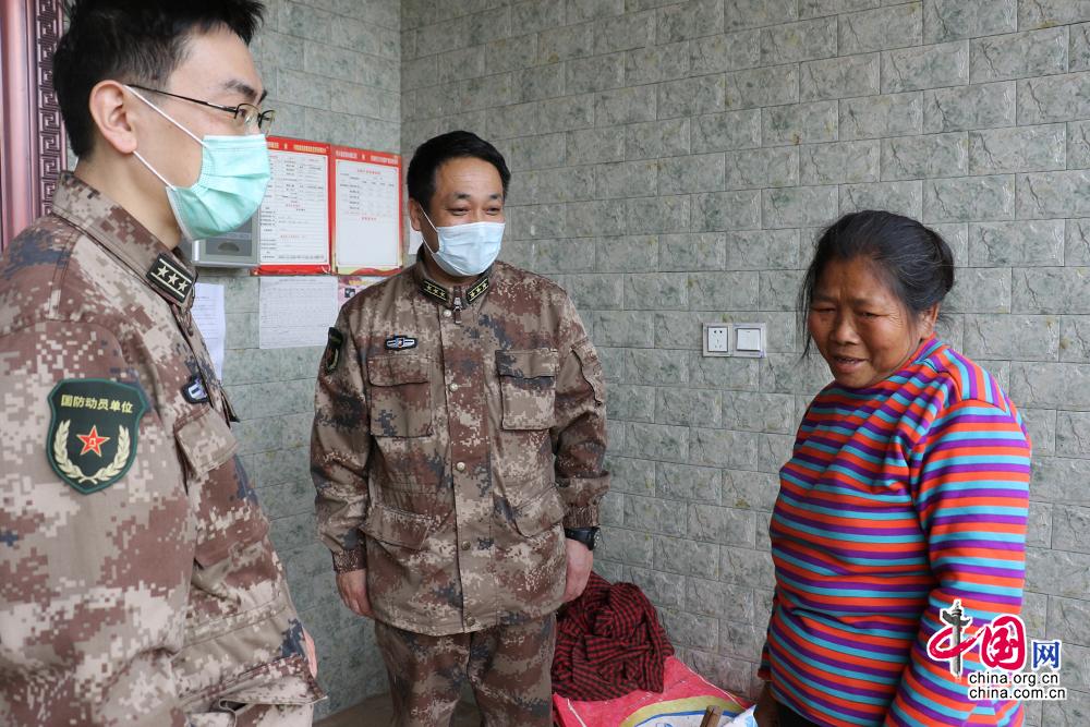 人武部官兵走访慰问村里的贫困家庭。王子冰摄
