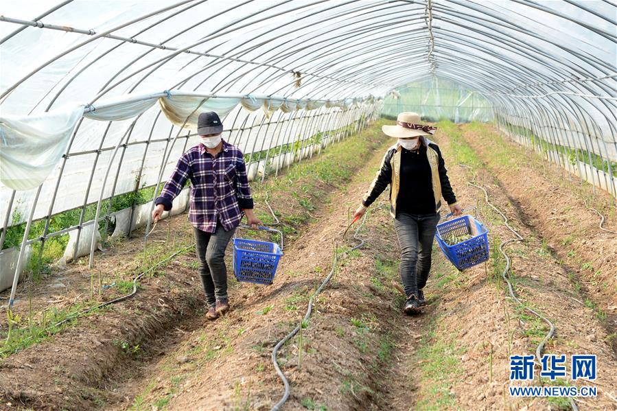 4月14日,工作人员在龙亢农场芦笋基地采收芦笋。新华社发(黄博涵摄)