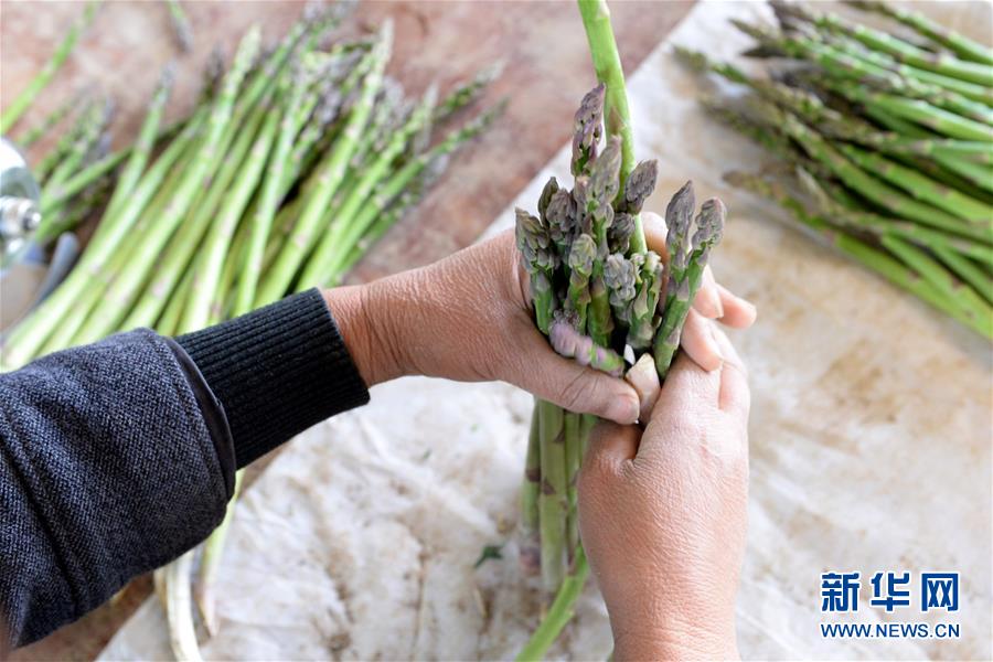 4月14日,工作人员在龙亢农场芦笋基地分拣芦笋。新华社发(黄博涵摄)