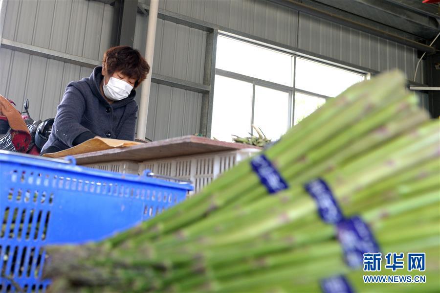 4月14日,工作人员在龙亢农场芦笋基地分拣芦笋。新华社发(黄博涵摄)