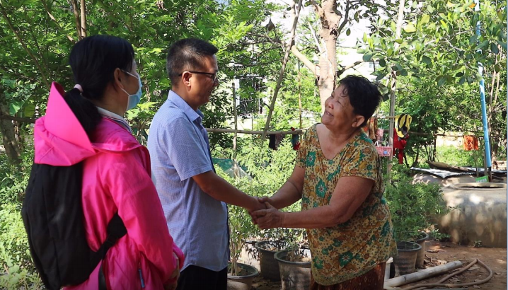 5月份受疫情影响,临时工机会越来越少。平日靠打零工讨生活的陈伦一家一度揭不开锅,吃饭都成了问题。中方专家组得知情况后, 第一时间联系饮水工程工地现场负责人,向他推荐了陈伦女婿到工地上干活,赚钱养家以解燃眉之急。中方专家组与中方工地负责人协商后,敲定次日上午让陈伦女婿到工地干活。为此,中柬联合项目办成员一起前往陈伦家,向他们转达这个好消息。衡·真田副司长嘱咐陈伦女婿,到工地上要好好干活,遵守上下班时间,听中方工地负责人的话,不要给我们柬埔寨工人丢脸。陈伦女婿感激得连连点头。
