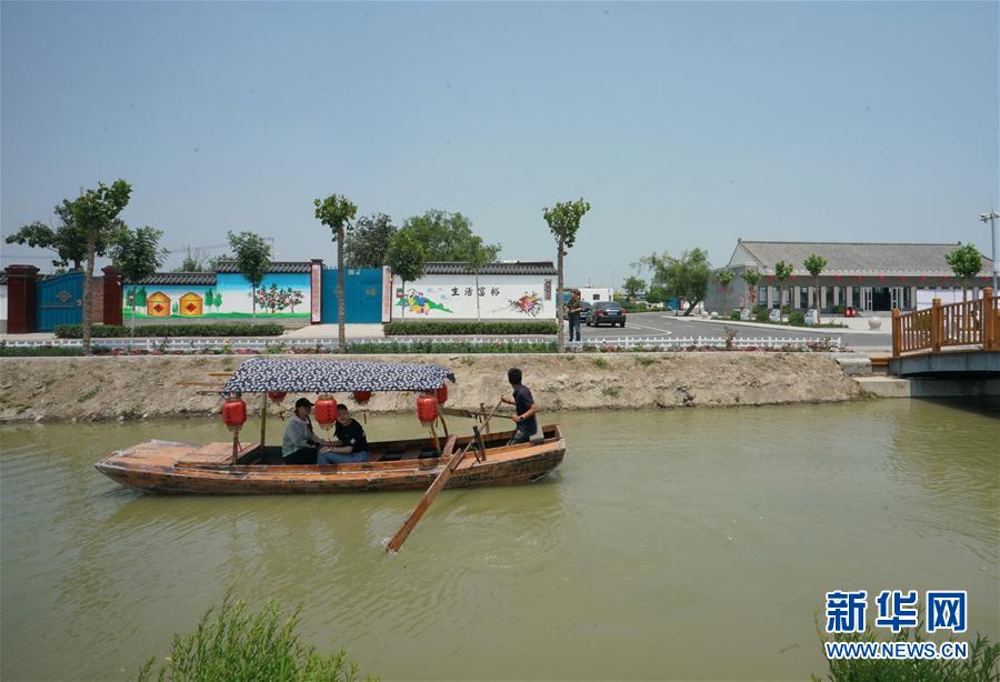 6月19日,游客在唐山市丰南区东田庄乡崔庄户村乘船游玩。 近年来,河北省唐山市丰南区因地制宜推进村容村貌和人居环境改善,建设生态宜居美丽乡村。夏日的丰南村庄风景秀丽,犹如画卷。 新华社记者 杨世尧 摄