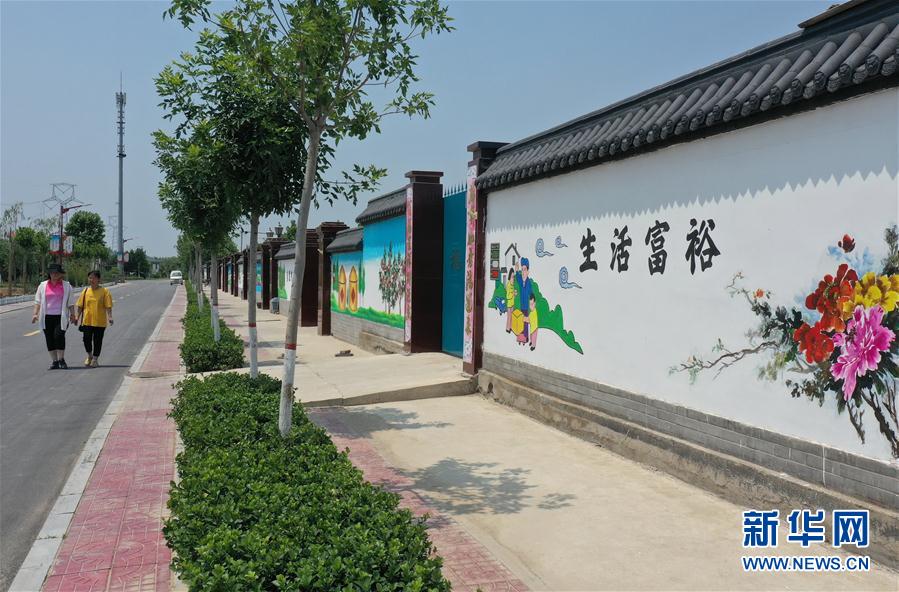 6月19日,唐山市丰南区东田庄乡崔庄户村村民在街上行走。 近年来,河北省唐山市丰南区因地制宜推进村容村貌和人居环境改善,建设生态宜居美丽乡村。夏日的丰南村庄风景秀丽,犹如画卷。 新华社记者 杨世尧 摄