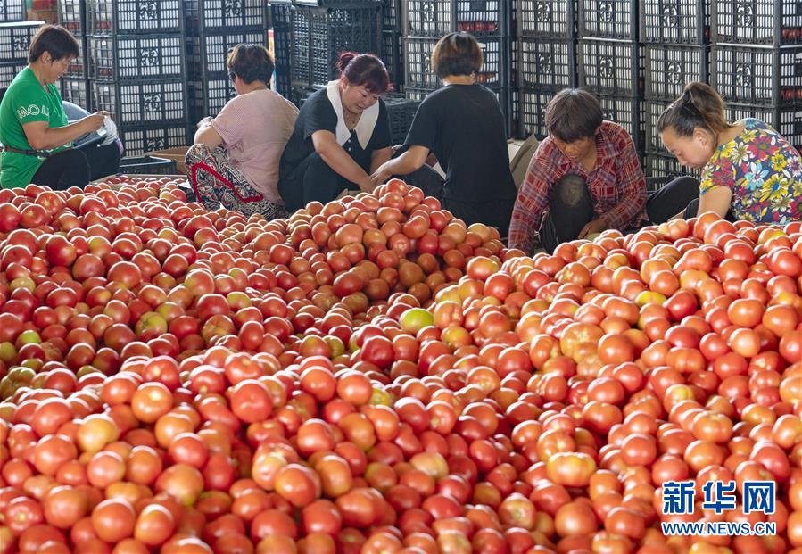 6月29日,在滦南县姚王庄镇蔬菜集散市场,菜农在分装西红柿。目前,该镇大棚蔬菜种植面积达到2.6万亩。 河北省滦南县近年来在推进农业产业结构调整过程中,把蔬菜作为富民产业,结合订单化种植模式,不断扩大蔬菜种植规模,拓宽农民增收渠道,助力乡村振兴。 新华社记者杨世尧摄