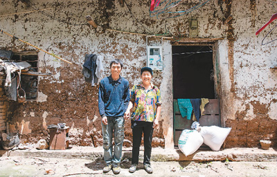 且沙次干、阿达么日杂夫妇在阿布洛哈村3组老屋土坯房前留影。