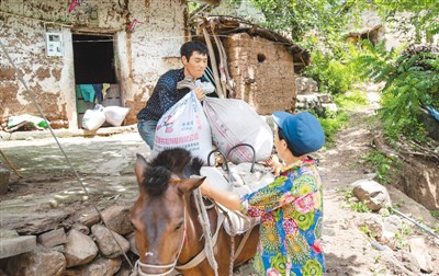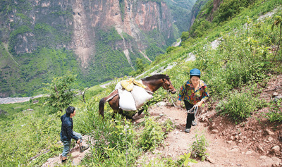 且沙次干、阿达么日杂夫妇赶着马,驮着粮食、家什,准备搬进村集中安置点的新居。