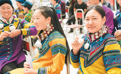 且沙次干二女儿且沙土杂(右)抽到了六号房,是一套80平方米两层钢混结构的小楼房。