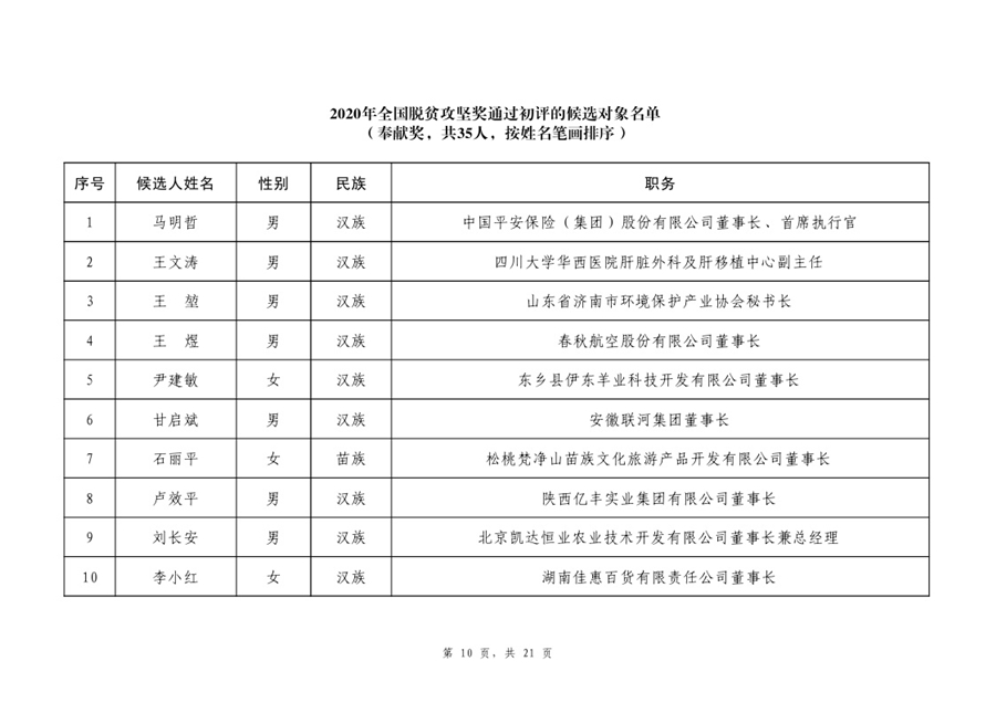 2020年全国脱贫攻坚奖通过初评候选对象公示