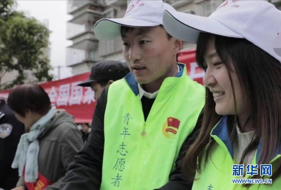 2019年9月,魏双宝(右二)在福建省福州市晋安区宦溪镇参加安全宣传志愿者活动。