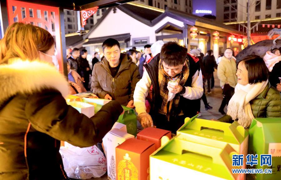 1月4日晚,在四川省华蓥市农产品夜市上,顾客在品尝特色农产品。