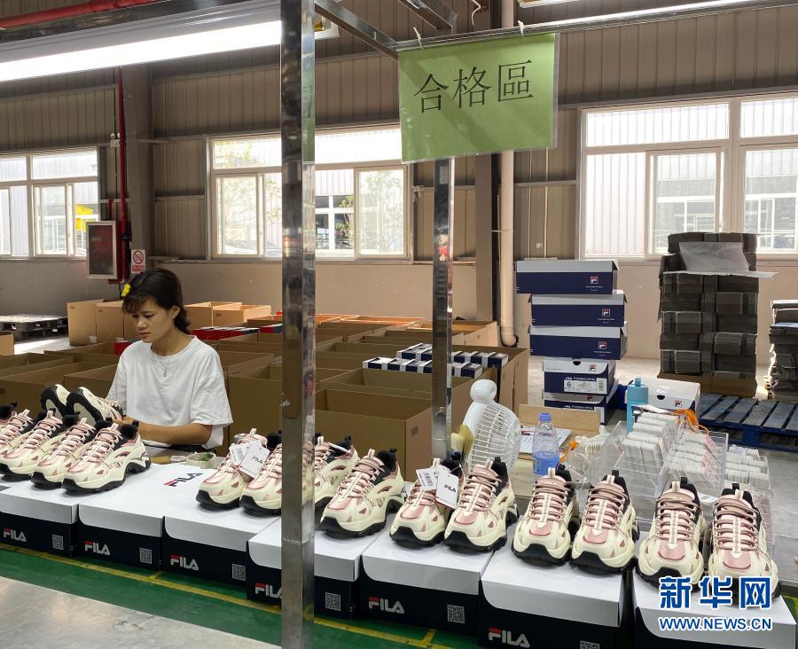 一名搬迁户在贵州省习水县易地扶贫搬迁安置点配套的鞋厂工作(2020年8月6日摄)。新华社记者 向定杰 摄