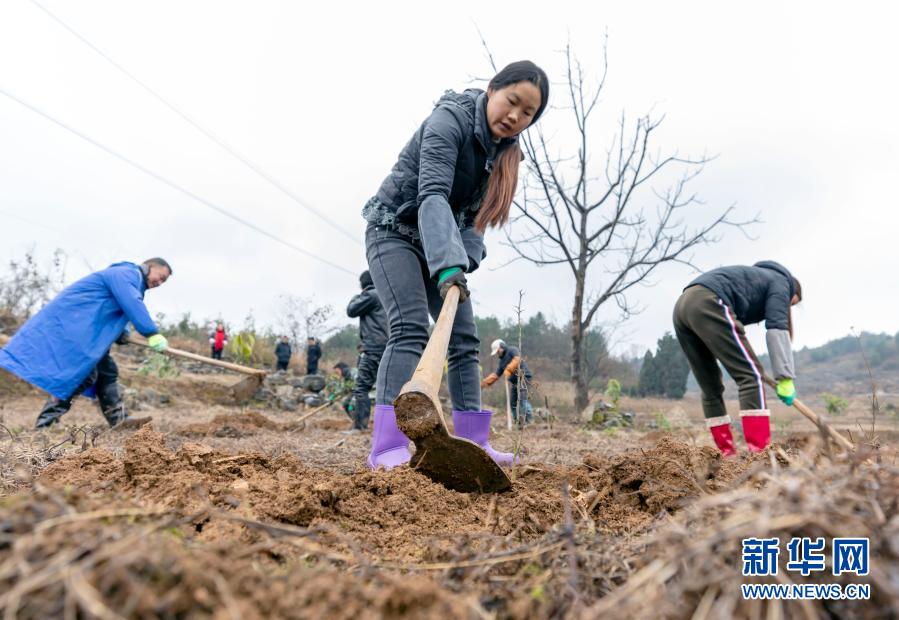 1月7日,村民在贵州省毕节市黔西县甘棠镇仲那村进行苗木栽种。新华社发(范晖 摄)