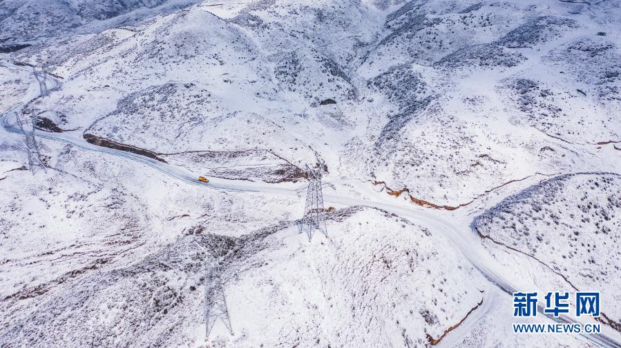 六盘水供电局输电所巡检2班工作人员在四格风电场开展特巡特维工作(1月12日摄,无人机照片)。新华社记者 陶亮 摄