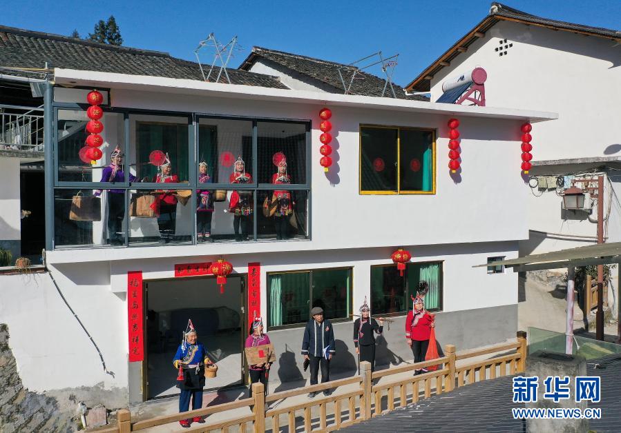 1月18日,在景宁县鹤溪街道周湖自然村,“快乐山歌队”队员在蓝聪美的新居里唱山歌。新华社发(李肃人 摄)