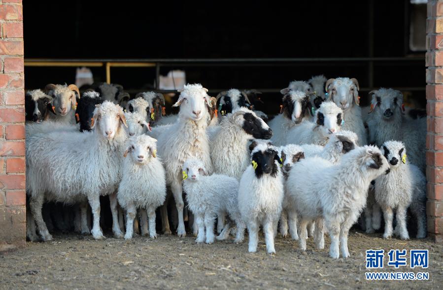 宁夏吴忠市红寺堡区红寺堡镇城东养殖园区的滩羊等待投喂(1月7日摄)。新华社记者 唐如峰 摄