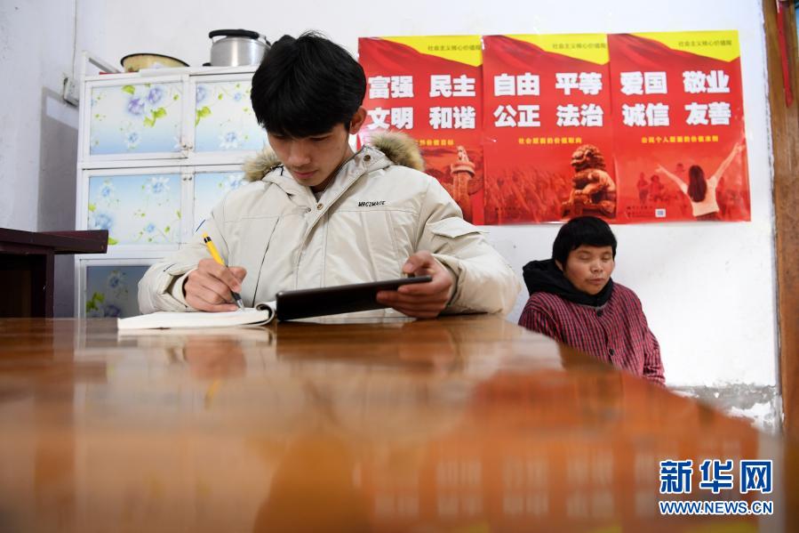 1月24日,程保留在家里复习功课。新华社记者 刘军喜 摄