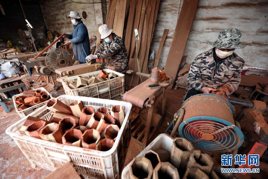 1月27日,山东省临沂市郯城县庙山镇乐泉村村民在制作二胡。