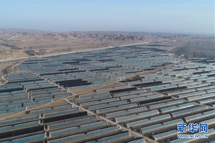 这是2月4日在靖远县北湾镇新坪村拍摄的蔬菜大棚(无人机照片)。