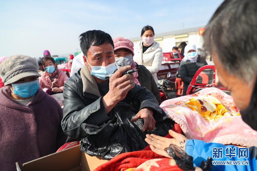 2月4日,在靖远县北湾镇新坪村农贸市场,菜贩胡荣辉同菜农商议黄瓜价格。新华社记者 马希平 摄