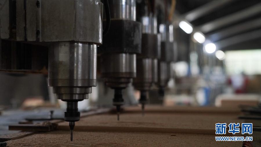 2月26日,铜鼓县奔步科技公司的设备在对竹板进行雕刻。