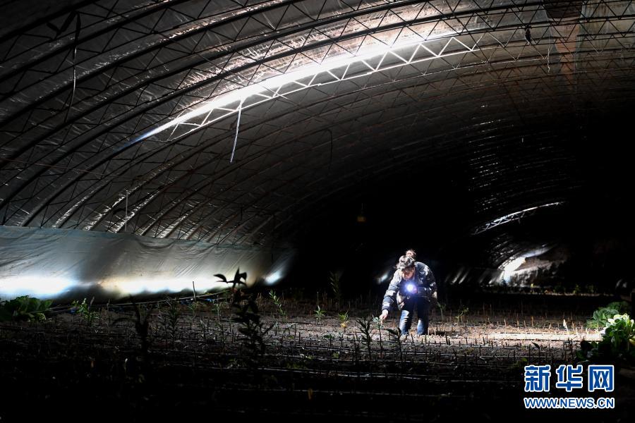 在乌鲁木齐县水西沟镇东湾村,张希英在温室大棚内查看休眠期的百合生长情况(3月5日摄)。
