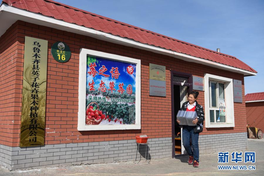 在乌鲁木齐县水西沟镇东湾村,张希英运送草莓采摘打包盒(3月5日摄)。