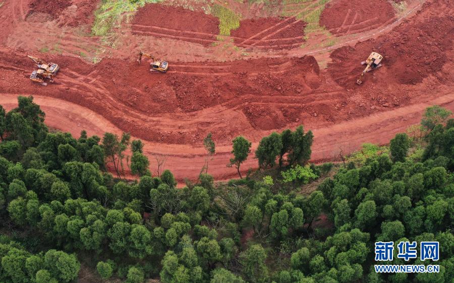 双江镇管店村农田宜机化改造作业现场(3月10日摄,无人机照片)。新华社记者 王全超 摄
