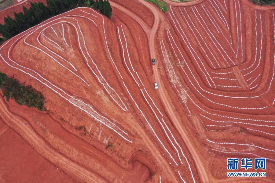 双江镇管店村南瓜和南高梅种植基地(3月10日摄,无人机照片)。新华社记者 王全超 摄