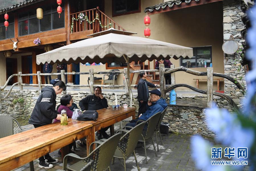 3月17日,游客在陇南市康县岸门口镇朱家沟村的一家民宿里聊天。