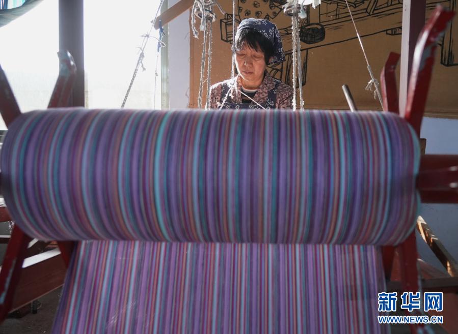 近年来,河北省迁安市杨店子街道办事处高引铺村为促进当地妇女就业创业,采取“公司+合作社+农户”模式,使用传统方法纺织土布,制作床上用品、箱包等手工布艺品,助力乡村振兴。