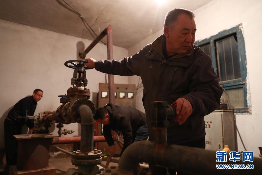 3月20日,在塘尕尔扬水站,顾正礼(右一)和同事进行启泵作业。