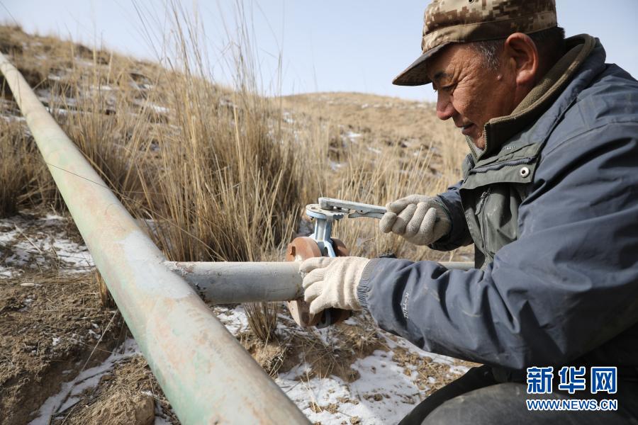 3月20日,顾正礼在检修管道。新华社记者 杜哲宇 摄