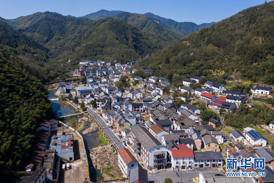 空中俯瞰杭州市临安区高虹镇龙门秘境村落景区(3月22日摄,无人机照片)。
