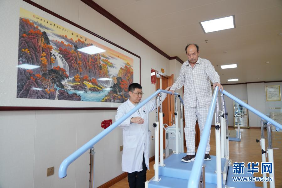 3月24日,居住在河北省唐山市古冶区安馨医疗养老庄园的老人在进行康复训练。