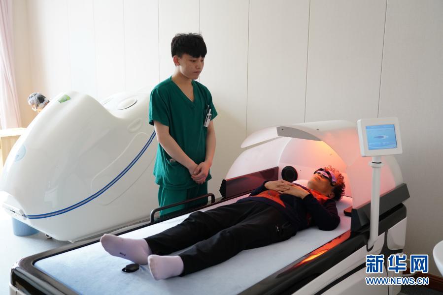 3月24日,居住在河北省唐山市古冶区安馨医疗养老庄园的老人在接受医疗治疗。