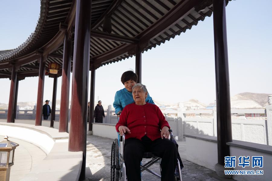 3月24日,居住在河北省唐山市古冶区安馨医疗养老庄园的老人在护工的陪护下休闲。