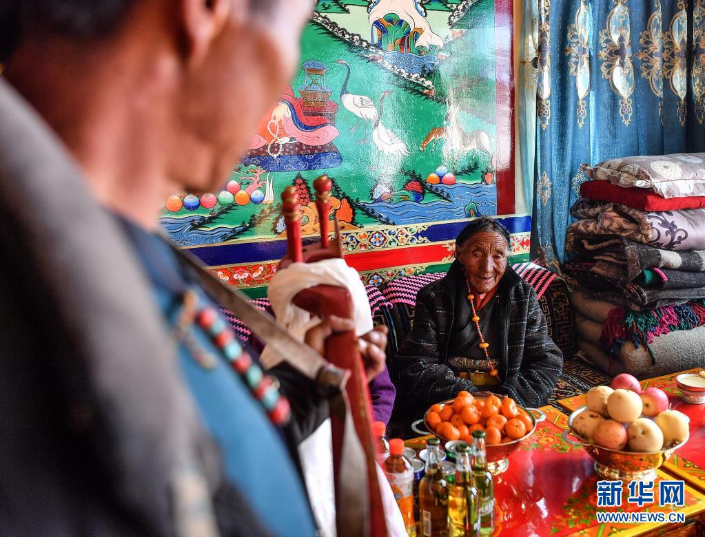 家人给达确老人唱歌(1月14日摄)。新华社记者 普布扎西 摄