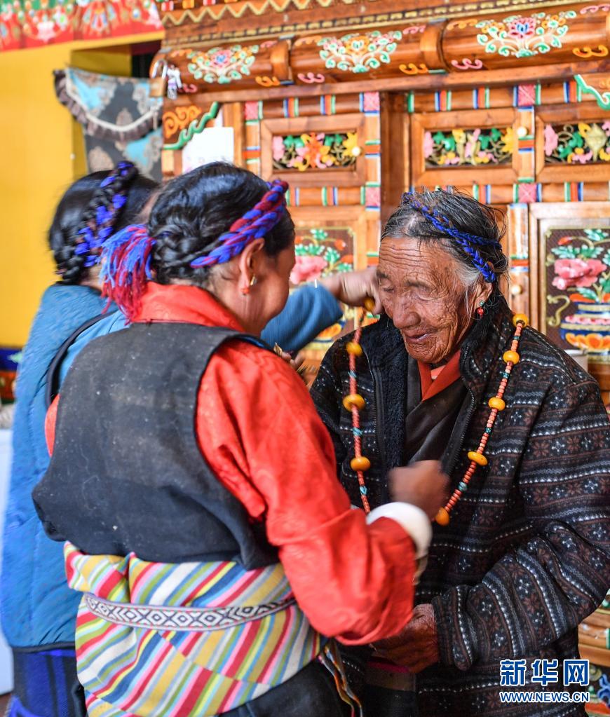 达确女儿给她戴上首饰(1月14日摄)。新华社记者 晋美多吉 摄