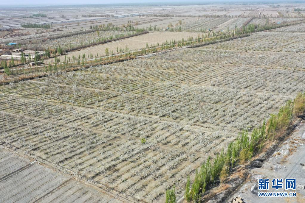 这是4月11日在铁门关市拍摄的一处梨园(无人机照片)。新华社记者 丁磊 摄