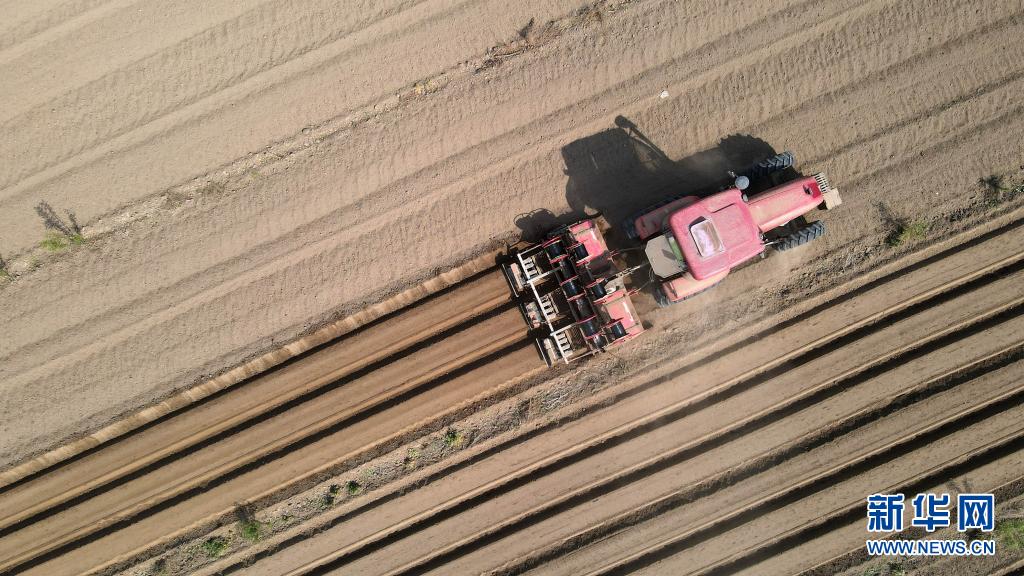 4月13日,邢台经济开发区鑫旺家庭农场农民在种植柴胡(无人机照片)。