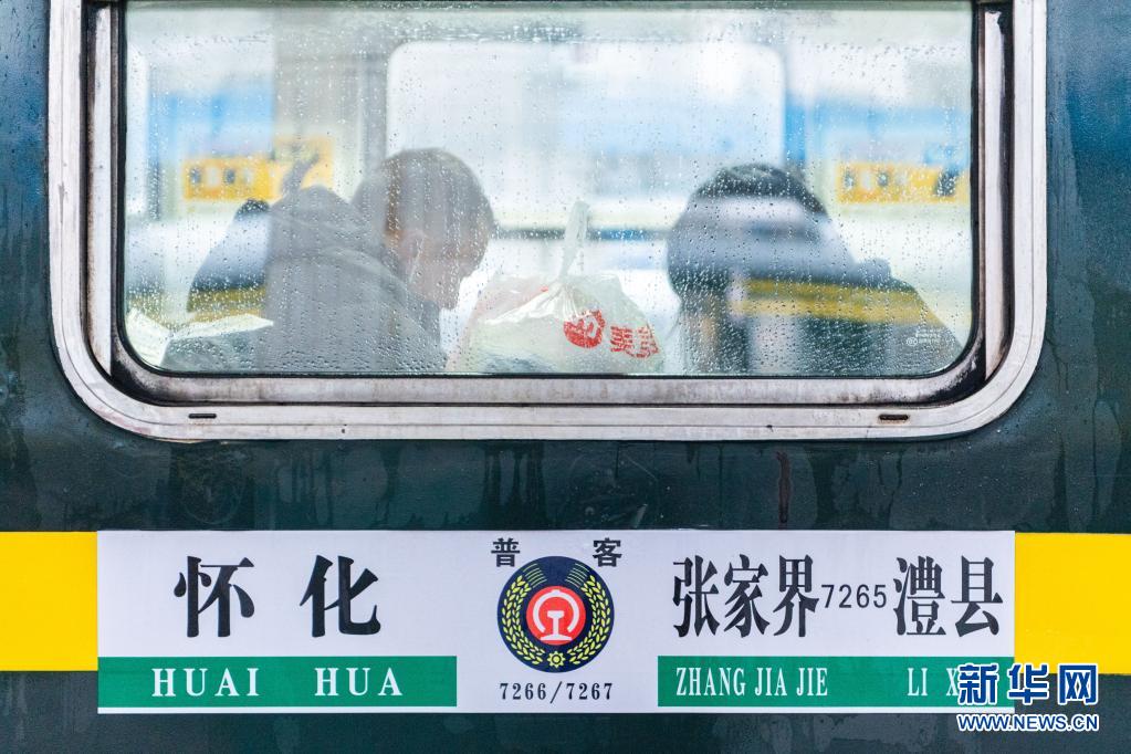 4月11日,乘客搭乘7266次列车在怀化站准备出发。新华社记者 陈思汗 摄